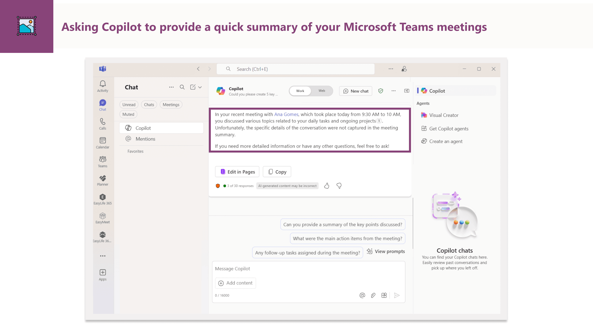 As you can see there are a lot of advantages in knowing how to get the best out of Copilot in Microsoft Teams. These are just some of the ways I like to use it, but the beauty of it is that you can be creative and find out ways to get the best out of it for your needs.
